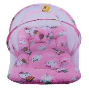 Baby Folding Teddy Print Mattress with Mosquito Net