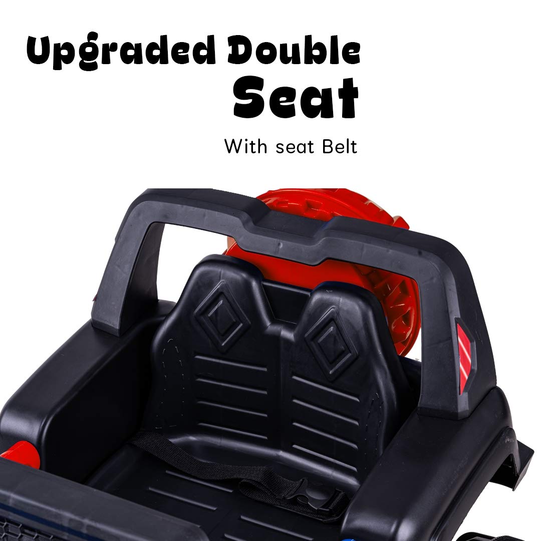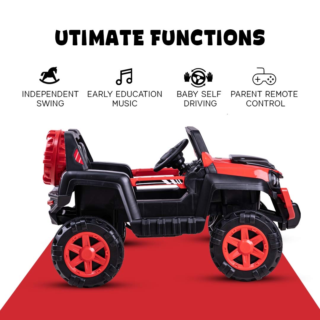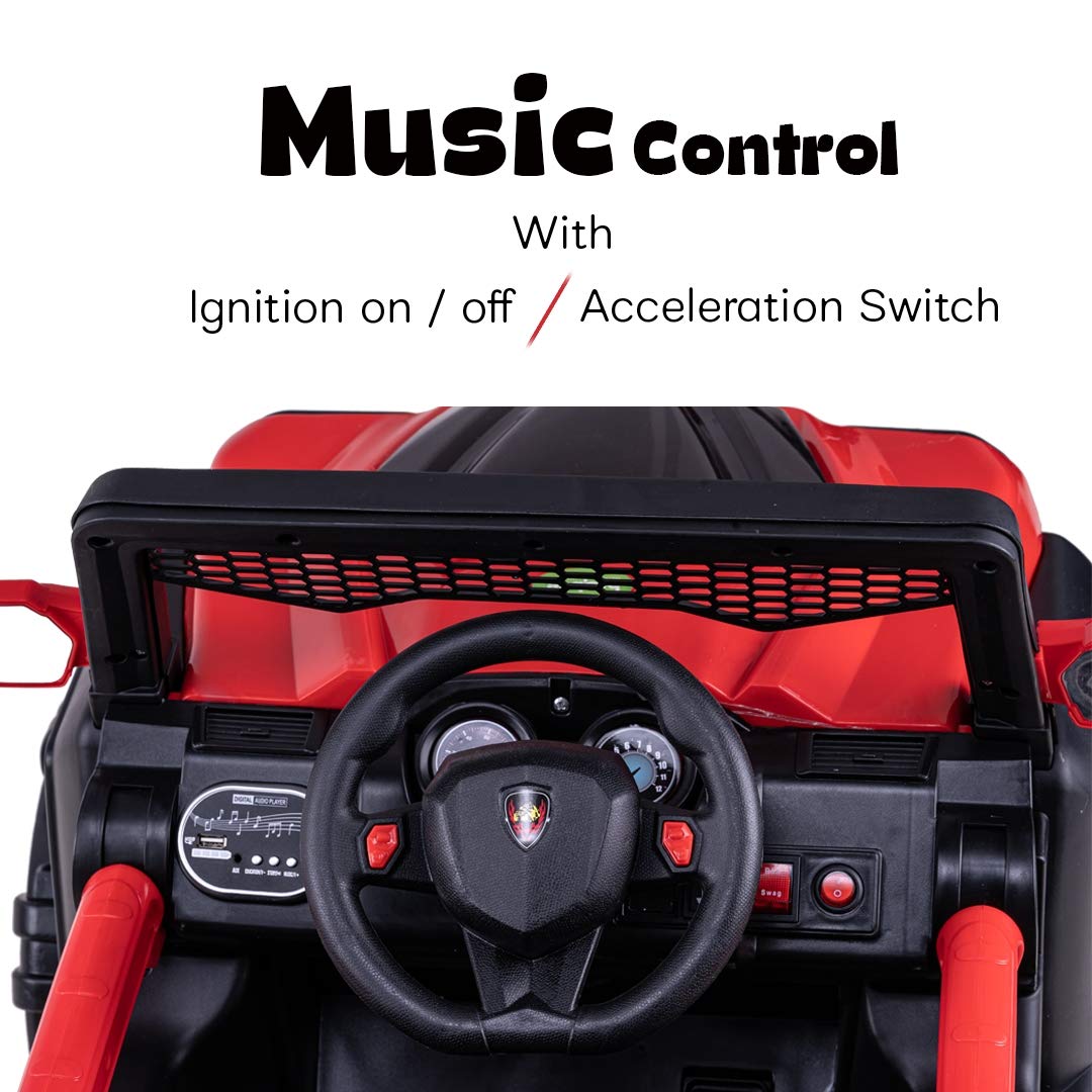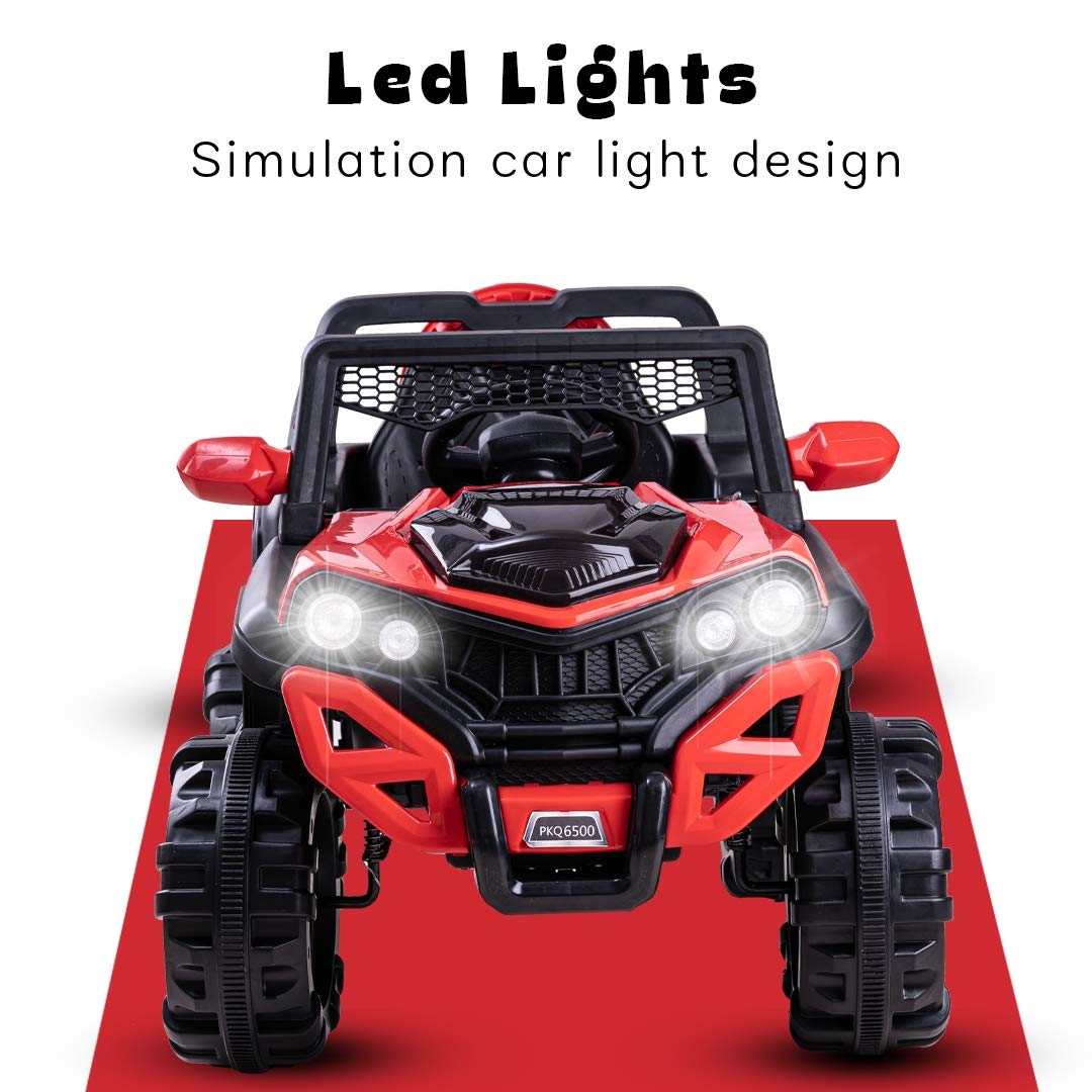 - EASY TO RIDE: forward, backward movement and left and right with handle operated, headlight with electricity display, mp3/usb/tf musics, the 4-wheel designed Dodge jeep is smooth and simple to ride for your toddler or young children.